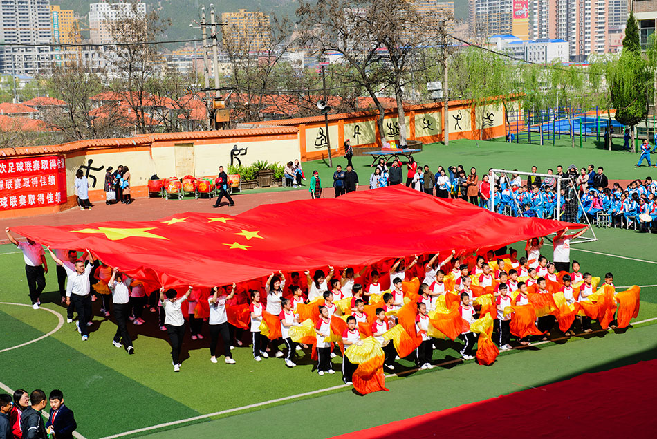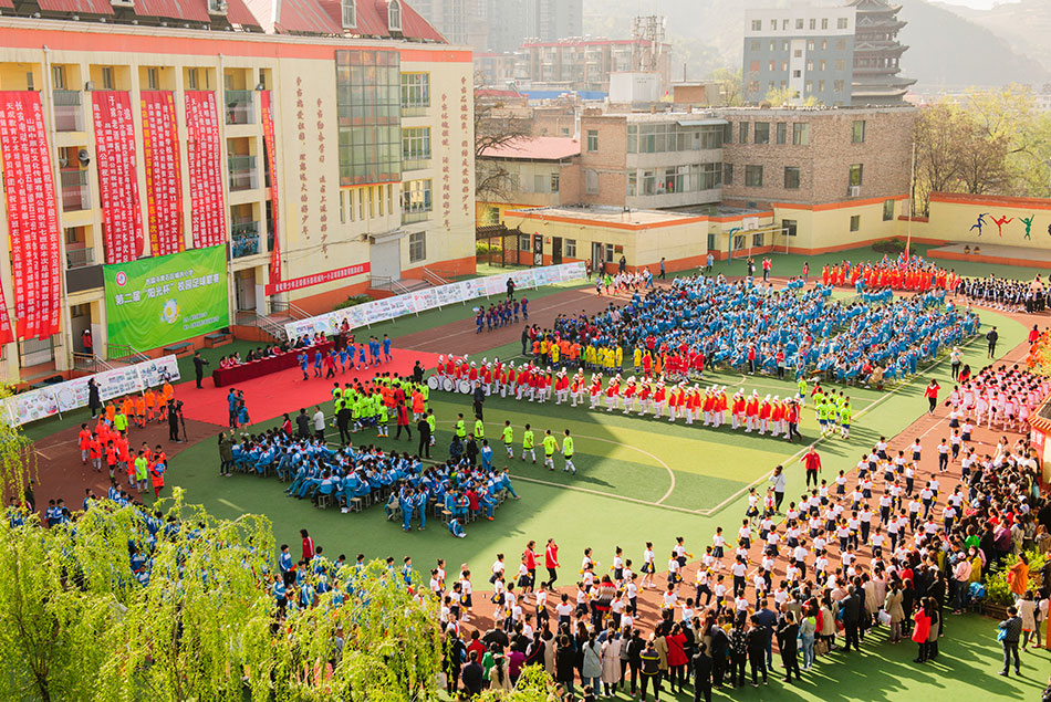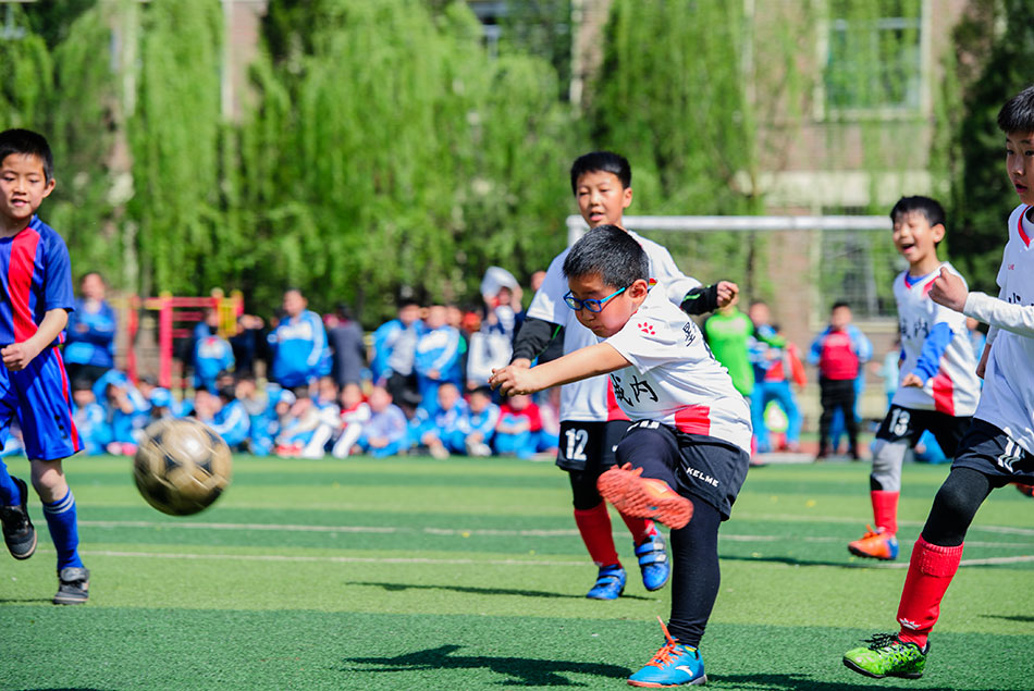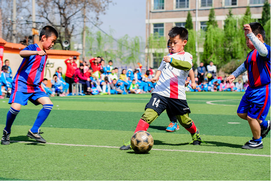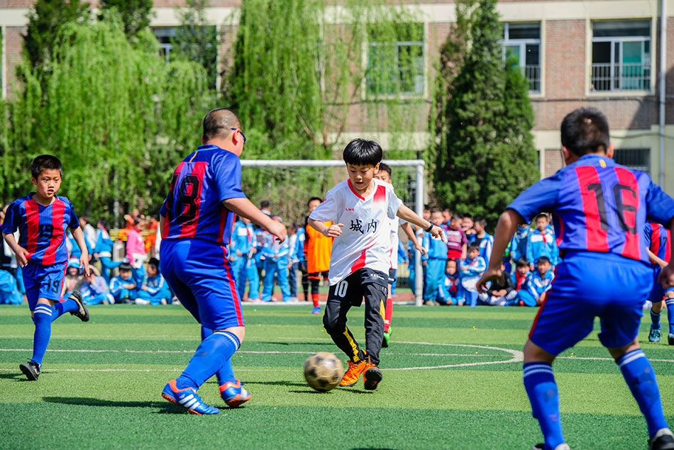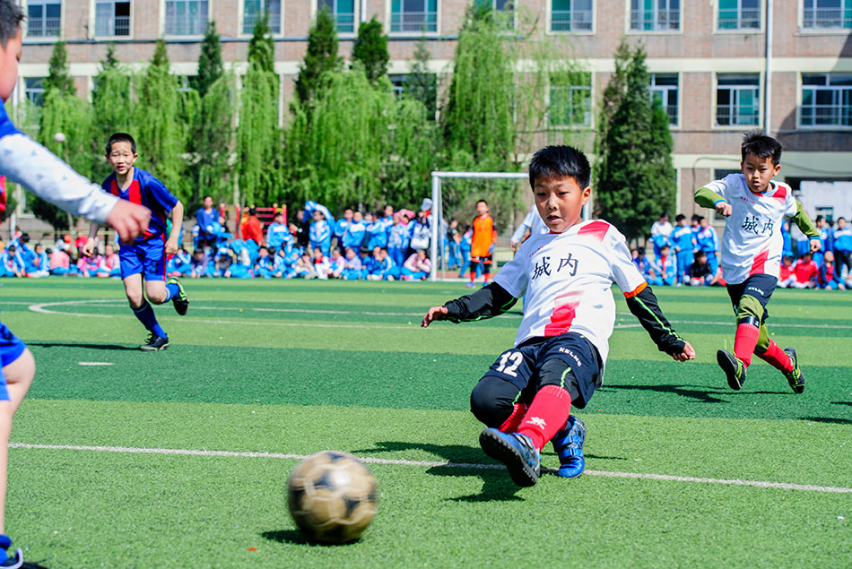 圖為交口中心校學(xué)生和城內(nèi)小學(xué)學(xué)生正在激烈的比賽中。