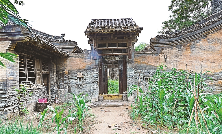 從正街往西有一座坐北朝南的清代三進(jìn)院建筑,原來(lái)門(mén)口有棵大槐樹(shù),村里人稱(chēng)“槐樹(shù)院”。一進(jìn)院東廂房南墻上建有照壁,磚雕椽飛、花卉、斗公式。東西廂房面寬三間,進(jìn)深三椽。二進(jìn)院東西廂房面寬四間,進(jìn)深三椽,均為單坡硬山頂,枋檁間有木雕花卉墊木,門(mén)窗仍為原有裝飾風(fēng)格。里院正房是中間三間大窯洞,兩側(cè)各一間小窯洞,有臺(tái)階上至窯頂,窯頂四周設(shè)花欄,倚欄而望全村景色一覽無(wú)余。大院正門(mén)在南廳東側(cè),兩邊一對(duì)有五尺多高的石獅。據(jù)說(shuō),每當(dāng)石獅頭上有水珠,天就會(huì)下雨,水珠小下小雨,水珠大就下大雨。正門(mén)臺(tái)階兩側(cè)有兩個(gè)長(zhǎng)石椅,供人們閑談、休息。