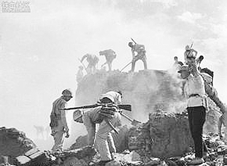 偽軍住的這個炮臺共有三層,第一層居住和辦公,第二層存放武器和彈藥,第三層是哨位。每兩層之間都開一個天窗可以上下出入,每天下午六、七點鐘即拉吊橋,任何人不得出入,九點鐘炮臺關(guān)門,任何人不得出院。那天晚上八點時分,兩個“買糧人”開始和偽軍正副隊長打牌,另一個和兩個班長在炕上抽大煙。到深夜十二點(約定好的時間),那個“買糧人”故意對偽班長說:“我抽得多了,頭痛想吐,請你把門開一下,我出院里風涼風涼?!蹦前嚅L說:“不行,誰也不能半夜出院,這是違紀?!蹦恰百I糧人”又說:“不讓出院,那就讓我去哨兵位上涼快涼快?!眰伟嚅L沒有表示許可,也沒有阻攔,只顧不要命地吸煙。他迅速爬上二層炮臺,把天窗門一鎖,底層打牌的“買糧人”見時機已到,就拔出手槍對正副隊長厲聲喝道:“告訴你們吧,今晚我們是收復(fù)炮臺來了,你們的武器已被我們封鎖了,現(xiàn)在外面都是八路軍,你們別想動一下。”那個上了二層的“買糧人”又很快上到三層,把放哨的偽軍抓住,從天窗口推到院子里。民兵在外面見哨兵一下來,就馬上命令放下吊橋,沖進院里。因天黑,炮臺內(nèi)偽軍根本看不清外面究竟是八路軍還是民兵,也不知道究竟來了多少,偽隊長只好乖乖地帶上他們的所有人馬排隊到了后山。三百余民兵都身背口袋蜂擁而進,每人背了一口袋糧食出來,然后用早已準備好的干柴堆在一起,把炮臺燒掉。