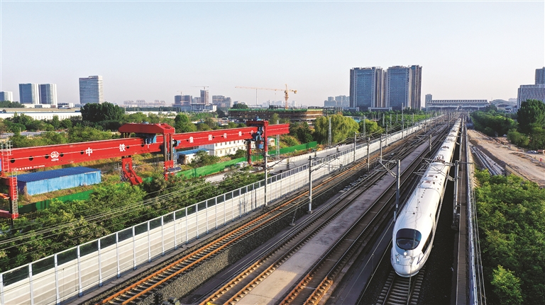 5月7日,在濟(jì)鄭高鐵山東段站前I標(biāo),中鐵十局的工作人員完成箱梁架設(shè)作業(yè)。 當(dāng)日,濟(jì)(南)鄭(州)高鐵山東段最后一榀箱梁在中鐵十局站前I標(biāo)順利架設(shè)完成,至此,濟(jì)鄭高鐵山東段完成全部箱梁架設(shè)工作,全面轉(zhuǎn)入鋪軌階段。 項目通車后,濟(jì)南到鄭州的通行時間將縮短至1.5小時,將成為中原城市群與山東半島城市群間的快速客運(yùn)通道。