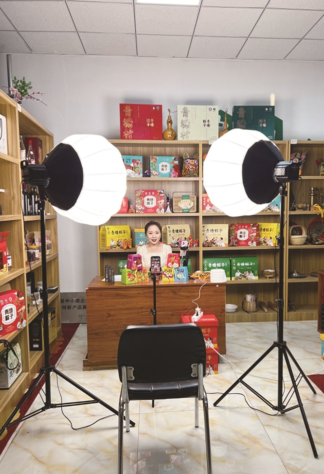 在前段時間的東方甄選直播間,青塘食品有限公司在短短的8分鐘賣出粽子2萬余單,銷售金額130萬元,成功讓青塘粽子火“出圈”。隨著端午節(jié)的臨近,在臨縣電子商務產業(yè)園區(qū),3個直播間,主播們正同步開展青塘粽子直播活動。據臨縣電子商務產業(yè)園區(qū)的工作人員閆旭介紹:“從五月開始,每天直播6個多小時,在他們直播間每天的成交額至少有三四萬,隨著高峰期的到來,有時供不應求?!?/p>