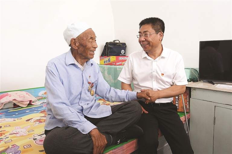 圖為市委書記、市雙擁工作領(lǐng)導小組組長孫大軍走訪慰問老英雄。