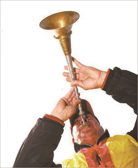 為什么大嗩吶能形成那樣立體的如泣如訴的樂(lè)音?面對(duì)記者的這一問(wèn)題,劉毅也作了解答:“大嗩吶一般多用兩支同號(hào)嗩吶,一支在高音區(qū)吹旋律,俗稱(chēng)‘靠字’,一支在中低音區(qū)襯托主旋律,俗稱(chēng)‘拉筒’。兩支嗩吶音色醇和,清濁有別,在演奏風(fēng)格和曲目上分為‘大家伙吹打’與‘細(xì)家伙吹打’。兩支合奏,自然就有了立體音的感覺(jué)了?!?/p>