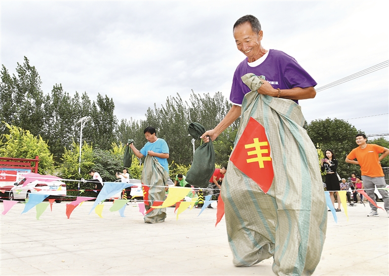 當(dāng)日,河北省滄州市肅寧縣師素鎮(zhèn)舉辦農(nóng)民趣味運(yùn)動(dòng)會(huì),人們通過參與運(yùn)花生、貼辣椒、豆類分揀等趣味運(yùn)動(dòng)項(xiàng)目,慶祝豐收。