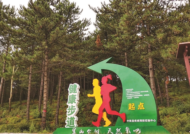 驅(qū)車從中陽(yáng)縣下棗林鄉(xiāng)軍山山腳下出發(fā),盤旋而上,山勢(shì)凌然,急彎坡長(zhǎng),四處楓葉灼灼、黃葉片片,一座背腹于山坳、錯(cuò)落有致且陽(yáng)光充足的森林公園呈現(xiàn)眼前。