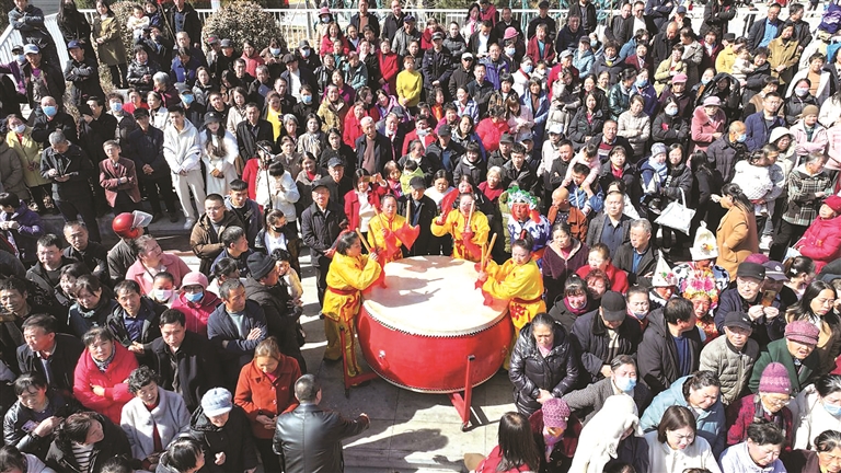 在鏗鏘的鼓點(diǎn)聲中,一條條巨龍騰挪翻飛、上下舞動(dòng),展現(xiàn)出金龍擺尾、龍身彎繞、龍頭昂揚(yáng)等多種造型,充分展示了龍的精、氣、神、韻,通過民間傳統(tǒng)方式,祈佑新的一年風(fēng)調(diào)雨順、五谷豐登。秧歌隊(duì)伍的演員們身穿喜慶艷麗的服飾,舞彩緞、打花傘,精神抖擻、步伐穩(wěn)健,為喜迎春日時(shí)節(jié)添彩助興。鑼鼓、秧歌、舞龍舞獅等多種傳統(tǒng)民俗文化依次亮相,現(xiàn)場(chǎng)一片歡樂祥和的節(jié)日氛圍,吸引了眾多市民前來(lái)感受濃濃的傳統(tǒng)文化。