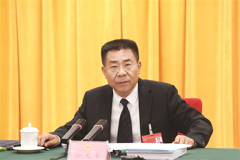 圖為市委書記孫大軍參加中陽縣代表團(tuán)審議。 記者 王益煒 攝