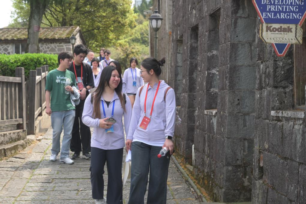 3月25日,福州大學(xué)外國(guó)語(yǔ)學(xué)院學(xué)生(前右)與美國(guó)太平洋大學(xué)學(xué)生(前左)在福州鼓嶺老街漫步交流。當(dāng)日,來(lái)自美國(guó)俄勒岡大學(xué)、布朗大學(xué)、奧斯威格高級(jí)中學(xué)等校的美國(guó)學(xué)生與福州大學(xué)學(xué)生齊聚福州鼓嶺,參加“讀懂中國(guó) 相約福建”友好交流活動(dòng)。兩國(guó)青少年走訪鼓嶺老街、萬(wàn)國(guó)公益社、柳杉王公園等,感受鼓嶺百年中外交融歷史風(fēng)貌,了解中美交往往事,暢談期待與希望,再續(xù)中美民間友好交往的“鼓嶺故事”。 新華社記者林善傳攝