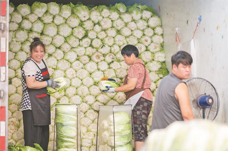 青海海東,多種冷涼蔬菜喜獲豐收;山東壽光,各蔬菜合作社全速出貨;湖北武漢,充足供應(yīng)讓“一元菜”重現(xiàn)菜場……根據(jù)農(nóng)業(yè)農(nóng)村部種植業(yè)管理司發(fā)布的數(shù)據(jù),截至9月上旬,全國在田蔬菜面積1.07億畝,同比增加154萬畝,處于年內(nèi)較高水平。