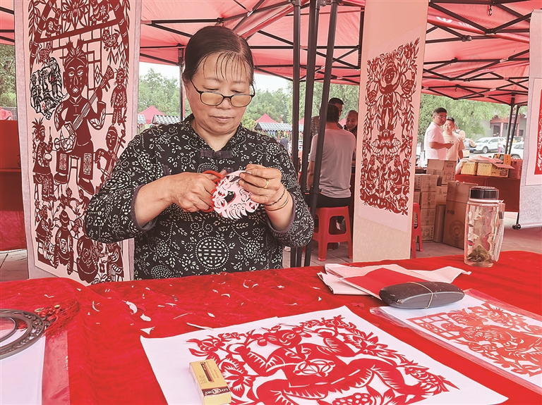 本報訊 蛇年新春即將到來之際,山西省工藝美術(shù)大師、省級非遺代表性傳承人、中國民間文藝家協(xié)會會員、孝義市剪紙非遺傳承人郭潤芝創(chuàng)作了一幅生動傳神、寓意吉祥的巨型《升卿納百財》團(tuán)花剪紙作品,入微的細(xì)節(jié)刻畫,精湛的剪刻技藝令觀者贊嘆,精美的作品也為即將到來的農(nóng)歷蛇年增添了濃郁的文化氛圍,也表達(dá)了作者對辭舊迎新、接福納祥的美好愿望。郭潤芝希望通過剪紙作品讓更多人了解和喜愛剪紙這門古老的藝術(shù)。