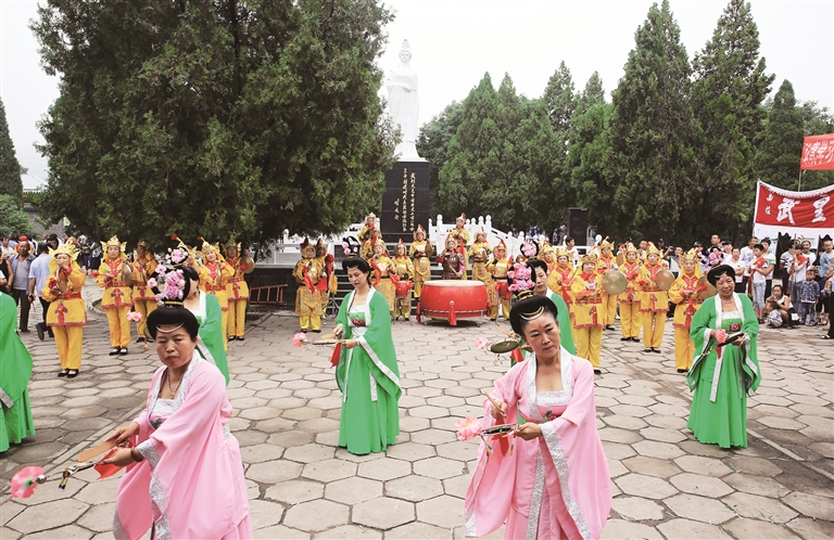 后來武則天當(dāng)了皇帝,據(jù)說南徐人還敲著鑼打著鼓到長安參加了慶典活動(dòng),并受到女皇的接見。打那以后,人們對樂器中的各種鑼都產(chǎn)生了興趣,有了特殊的感情,也逐步形成了南徐村獨(dú)具特色的民間藝術(shù)“武皇群鑼”。它最得意的樂器是:云鑼、篩鑼(又稱開道鑼)、馬鑼、京鑼、武鑼、手鑼、小鑼70余面,故名叫群鑼。同時(shí)還配有大鼓、大镲;小鼓、小镲以及旋子等民樂。