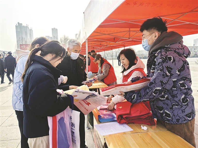 圖為汾陽市總工會向群眾發(fā)放文明手冊,倡導(dǎo)文明規(guī)范理念。