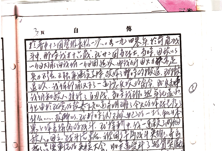 如1940年,于岢嵐戰(zhàn)斗中,那時我才16歲,在二十二團當戰(zhàn)士,當時,因敵以一個大隊向我們一個團進攻,而我們因火力不足、兵力不強,不能再繼續(xù)支持,故作了暫時的撤退。在撤退不久,我們部隊又下了一道總反攻的命令,在反擊中我們與敵人進行了白刃戰(zhàn),當時我雖然年紀還小,但由于在黨的教養(yǎng)下指導(dǎo)并明確今天的作戰(zhàn)是為了什么……故所以,在那時就不顧自己的一切,和日本鬼子作著拼命的戰(zhàn)斗,在拼刺中,我一連殺了兩個敵人。因之,戰(zhàn)斗結(jié)束后,被團評為戰(zhàn)斗英雄,并出席了呂梁軍區(qū)的英模大會。