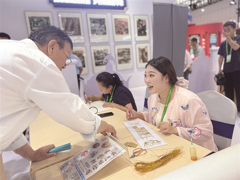 在第七屆山西文博會呂梁展館內(nèi),離石區(qū)景藝軒掐絲琺瑯工作室的展臺前,32歲的王景舒正專注地演示掐絲工藝——細(xì)如發(fā)絲的銅絲在她指尖彎曲、粘貼,慢慢勾勒出花鳥紋樣的輪廓。作為離石區(qū)目前唯一一家掐絲琺瑯創(chuàng)作工作室,景藝軒的亮相,讓不少參展商直呼“亮眼”;更令人驚喜的是,開展首日,工作室的兩幅作品便成功售出,一對掐絲琺瑯公雞裝飾畫以8000元成交,成了展區(qū)里的“開門紅”。
