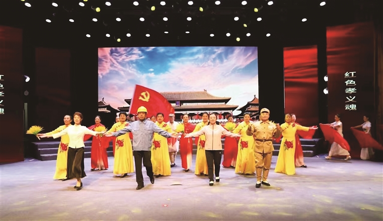 活動在氣勢恢宏的大合唱《呂梁山上》中,拉開帷幕。節(jié)目以“紅色孝義魂”為主題,分“星火燎原、抗日烽火、人民解放”三大篇章,通過歌舞、情景劇、詩朗誦等多元藝術(shù)形式展現(xiàn)革命歷史畫卷,用一幕幕紅色經(jīng)典帶領(lǐng)全體師生重溫烽火歲月中的抗戰(zhàn)歷史,生動再現(xiàn)了孝義人民在抗日戰(zhàn)爭和解放戰(zhàn)爭中的英勇事跡與家國情懷。演出最后,全體師生與演員齊聲高唱《沒有共產(chǎn)黨就沒有新中國》,歌聲嘹亮、情感澎湃,將整場活動推向最高潮。