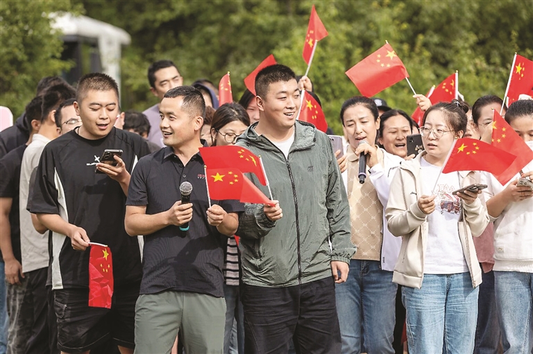 健步結(jié)束后,一場(chǎng)紅歌對(duì)唱隨即展開(kāi)?,F(xiàn)場(chǎng)四個(gè)方隊(duì)競(jìng)相演唱《團(tuán)結(jié)就是力量》《我和我的祖國(guó)》《歌唱祖國(guó)》《愛(ài)我中華》等紅色歌曲,嘹亮歌聲響徹現(xiàn)場(chǎng),激昂旋律激蕩人心,喚起了在場(chǎng)所有人的愛(ài)國(guó)情懷。紅歌余音未了,知識(shí)競(jìng)答環(huán)節(jié)又拉開(kāi)帷幕,現(xiàn)場(chǎng)未婚青年和新婚夫婦踴躍搶答婚育政策和移風(fēng)易俗相關(guān)知識(shí),大家邊交流邊學(xué)習(xí),在輕松愉悅的氛圍中收獲滿滿。