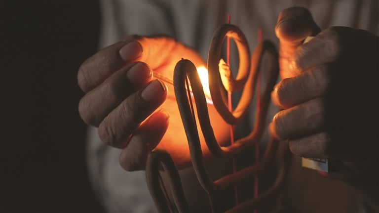 “云香講究只點一次、一燃而盡,制作也得一筆做成?!泵坐櫟陆榻B,為讓這門老手藝跟上時代,他們在傳統(tǒng)“壽”字圖案的基礎(chǔ)上不斷創(chuàng)新,讓云香既保留古韻,又添新意。