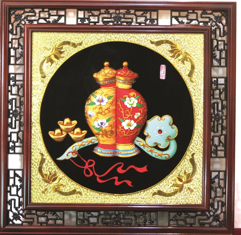 走進(jìn)傳統(tǒng)堆綾藝術(shù)傳承所“臻品閣”,一幅名為《錦上添花》的作品格外引人注目。這是由省級非遺交城堆綾第六代傳承人張姣麗團(tuán)隊(duì)自主設(shè)計(jì)的精品佳作?!斑@幅作品制作的時(shí)候,我們8個(gè)人歷經(jīng)了差不多一年的時(shí)間,最后才制作完成?!睆堟惤榻B說,該作品以錦雞和牡丹為題材,寓意“好上加好、美上加美”,不僅斬獲2012年國家外觀專利,還在“禮遇山西 晉迎五洲”外事活動(dòng)中榮獲外事禮品三等獎(jiǎng),成為對外文化交流的靚麗名片。