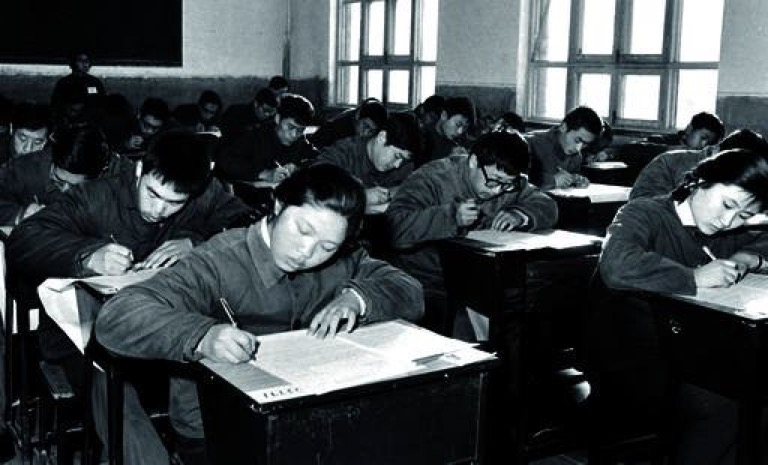 1977年8月4日,剛剛?cè)婊謴?fù)工作、分管科教的鄧小平邀請30多位著名科學(xué)家和教育工作者座談。鄧小平當(dāng)場表態(tài):“‘16字方針’必須推倒,恢復(fù)統(tǒng)一高考從今年開始?!本驮谶@一年,中斷11年之久的“擇優(yōu)錄取”高考制度終于恢復(fù)了。570萬考生從農(nóng)村、工廠、部隊走進(jìn)考場,最終將近28萬大學(xué)生在1978年2月、3月間走進(jìn)了大學(xué)校園。在過去40年里,我國有1.2億人通過高考進(jìn)入大學(xué)。
