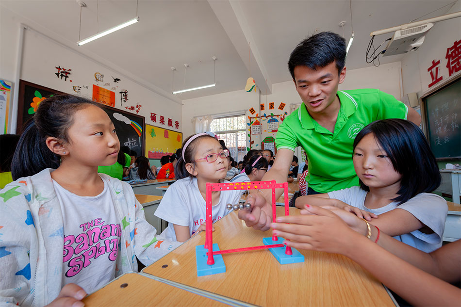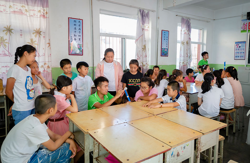 和以往相比,今年,臨縣朱家會(huì)小學(xué)孩子們的暑期生活,有些不一樣。不是整天的看電視、打游戲,而是圍坐在教室里學(xué)趣味英語(yǔ)、做科學(xué)實(shí)驗(yàn),唱歌、畫(huà)畫(huà)、練書(shū)法,還學(xué)了自己學(xué)校不曾開(kāi)設(shè)過(guò)的心理知識(shí)和法律常識(shí),課堂上互動(dòng)熱烈,笑聲不斷!原來(lái)是,山東理工大學(xué)“守望麥田實(shí)驗(yàn)團(tuán)”的29名大學(xué)生來(lái)這里開(kāi)展了為期10天的支教活動(dòng)!記者 劉亮亮 喬鵬華 攝