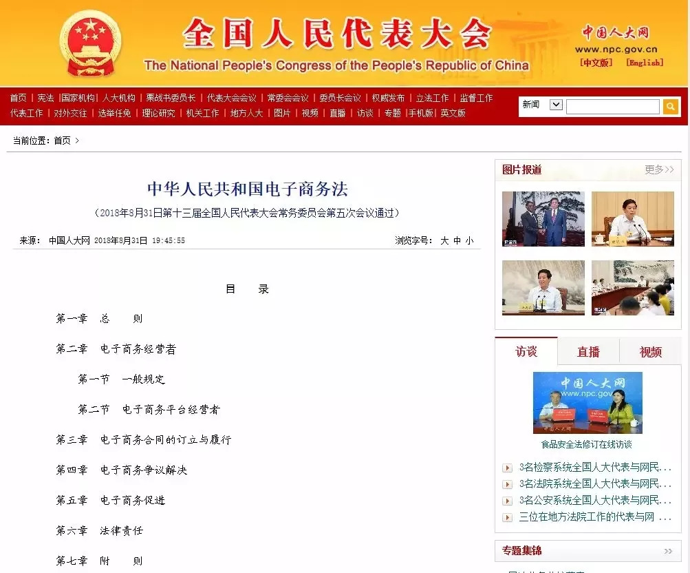為了保障電子商務(wù)各方主體的合法權(quán)益,規(guī)范電子商務(wù)行為,維護(hù)市場秩序,促進(jìn)電子商務(wù)持續(xù)健康發(fā)展,近日備受關(guān)注的《電子商務(wù)法》經(jīng)十三屆全國人大常委會(huì)第五次會(huì)議表決通過,并將于明年1月1日正式施行。