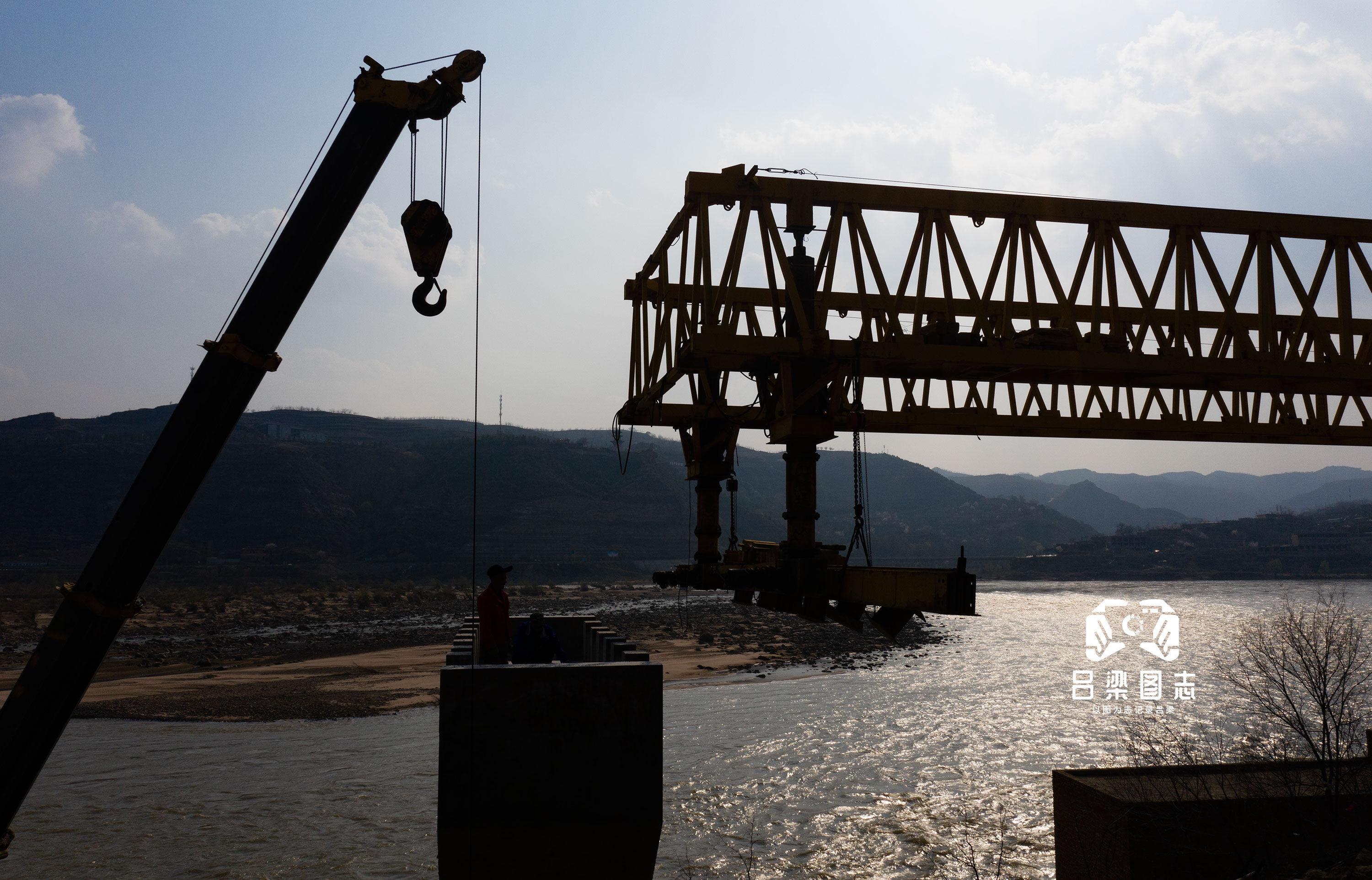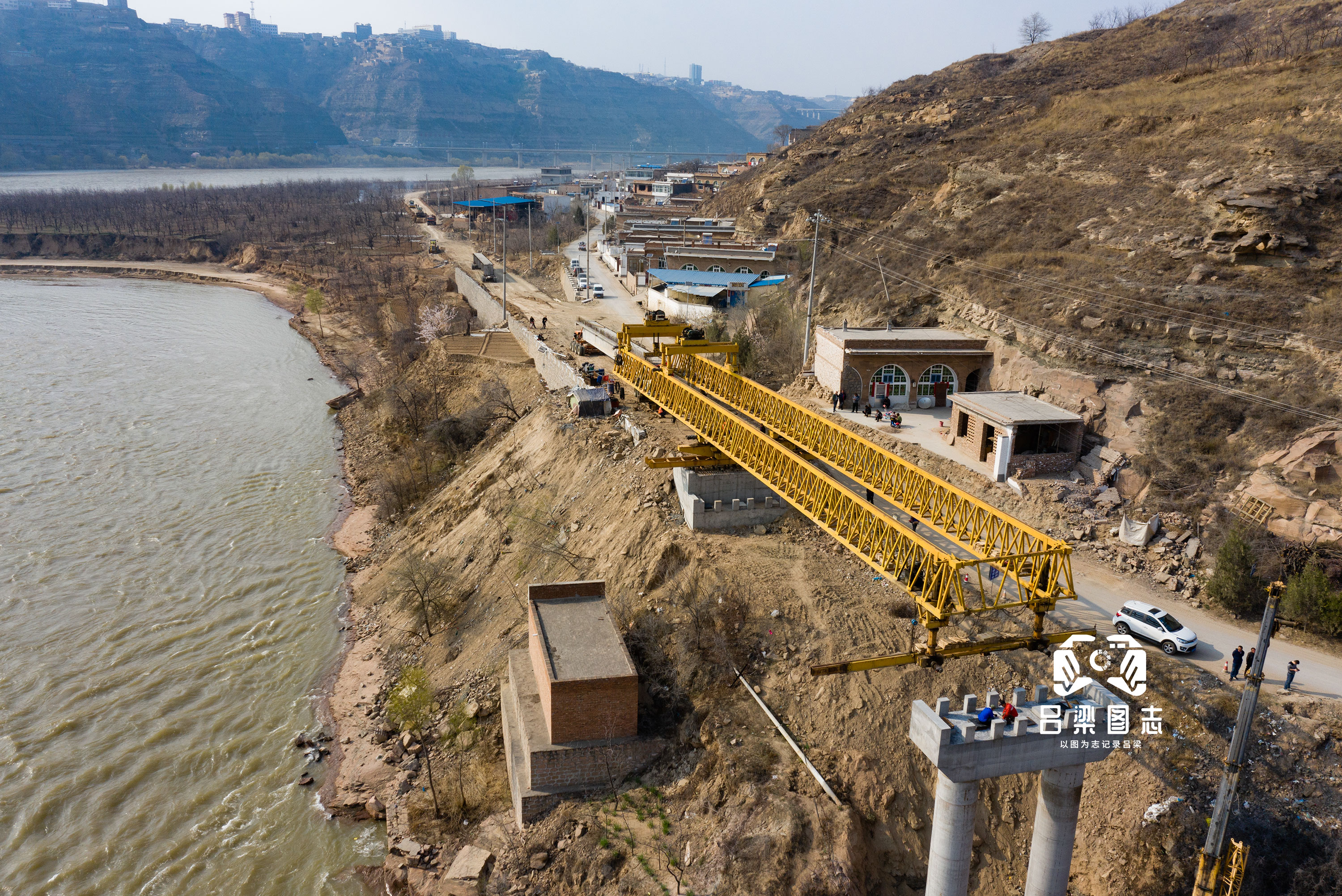 黃河一號旅游公路臨縣克虎段橋梁架設現(xiàn)場。記者 劉亮亮 攝影報道
