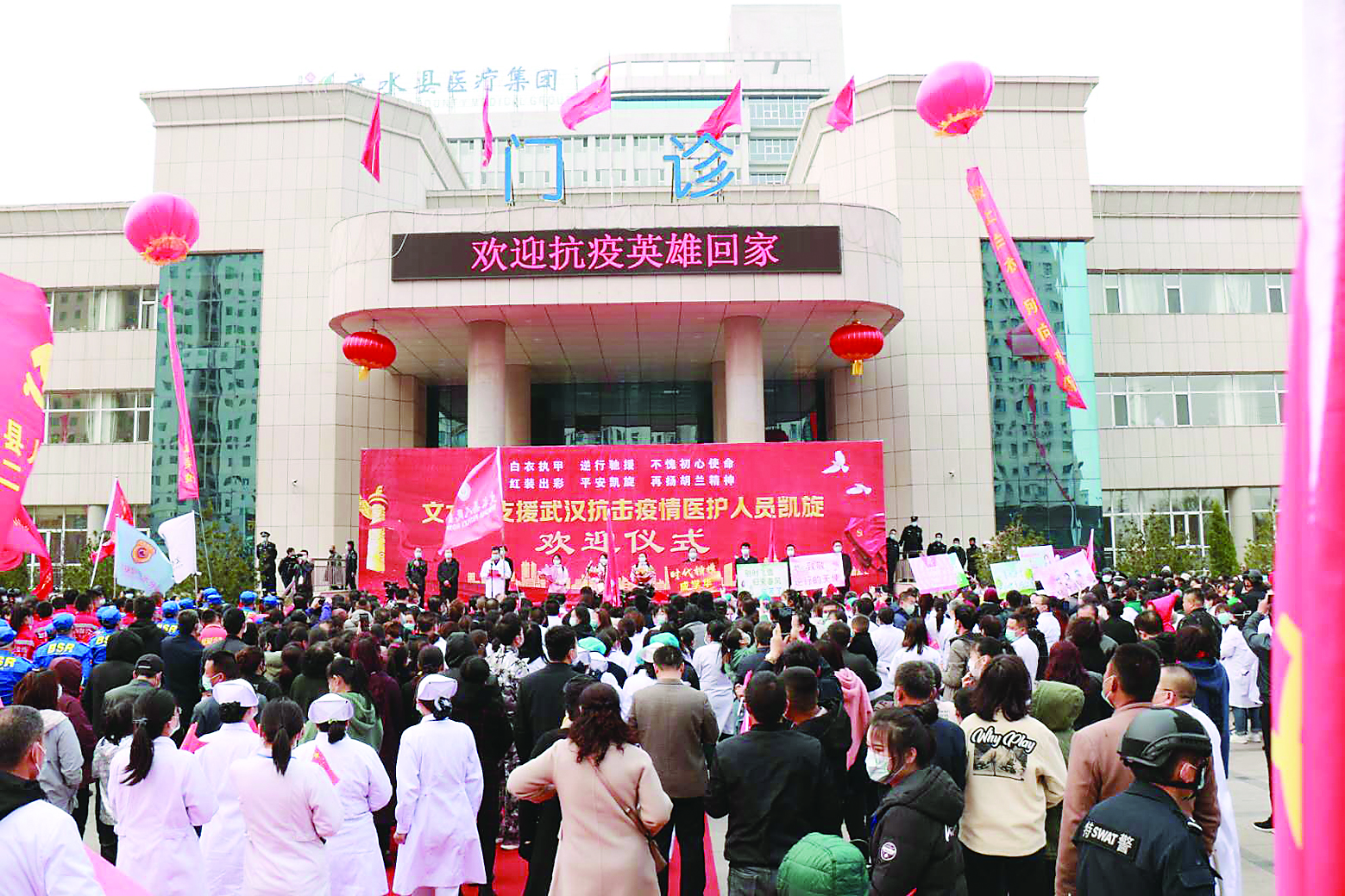 文水縣舉行儀式歡迎支援湖北的成學(xué)華、 劉月云、李鳳嬌3名醫(yī)護(hù)人員凱旋