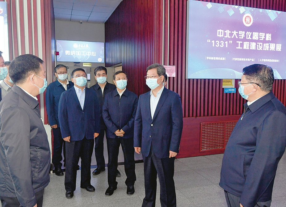 習近平總書記視察時對我省轉(zhuǎn)型發(fā)展給予充分肯定,希望山西在轉(zhuǎn)型發(fā)展上率先蹚出一條新路來。近年來,中北大學深入實施“1331工程”,在重點學科、重點實驗室、重點創(chuàng)新團隊建設(shè)方面取得積極成效。樓陽生聽取中北大學“1331工程”儀器科學與技術(shù)一流學科建設(shè)、重點實驗室、創(chuàng)新團隊、科研項目介紹,詢問科研人才合作和成果轉(zhuǎn)化情況,希望進一步打通產(chǎn)學研,把領(lǐng)先技術(shù)優(yōu)勢轉(zhuǎn)化為產(chǎn)業(yè)優(yōu)勢。得知該校與知名信創(chuàng)企業(yè)合作,建立人才培養(yǎng)聯(lián)合基地,要求加快項目落地,讓產(chǎn)業(yè)有科研支撐,科研有用武之地,人才有發(fā)展平臺。山西省高分子復(fù)合材料工程技術(shù)研究中心是“1331工程”重點實驗室,樓陽生認真察看生物降解納米有機肥和石墨烯改性輪胎橡膠復(fù)合材料、重防腐涂料等創(chuàng)新成果展示,指出,材料是裝備制造業(yè)的基石,要立足科技前沿,加強“卡脖子”技術(shù)研發(fā),為轉(zhuǎn)型發(fā)展作貢獻。中北大學前沿交叉科學研究院依托優(yōu)勢學科、堅持需求導(dǎo)向,組建跨學院、跨學科、跨校際科研團隊,開展前瞻研究。樓陽生了解射頻濾波器、溫度傳感器、智能感知微系統(tǒng)等研發(fā)情況、應(yīng)用前景,與團隊負責人親切交流,強調(diào)要加大科研支持力度,優(yōu)化創(chuàng)新資源配置,強化對接服務(wù)保障,加快科技成果就地轉(zhuǎn)化。樓陽生充分肯定中北大學在科技創(chuàng)新方面的努力和成效,勉勵中北大學聚焦“六新”,瞄準前沿,勇攀高峰,加快向“雙一流”大學目標邁進。