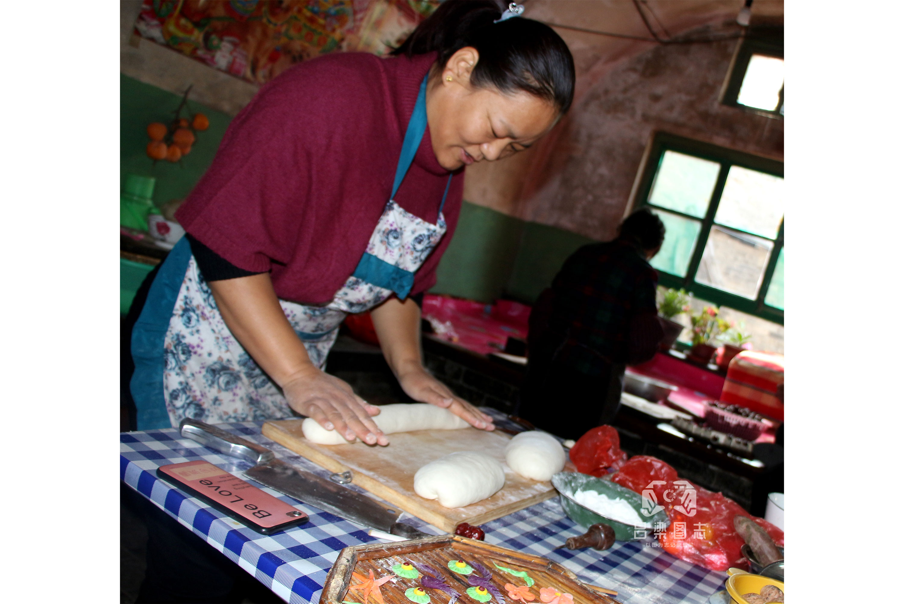 花饃的原料以白面粉為主,另有豆子、棗、胡椒等輔料.所需的工具為極其普通的剪刀、梳子、菜刀等。手法有切、柔、提、揪、挑、壓、搓、撥、按等,做成花、鳥 、魚 、龍等各種形狀,個(gè)個(gè)造型各異、栩栩如生,體現(xiàn)了農(nóng)家婦女們心靈手巧和不凡的藝術(shù)想象力。(王雅玲 攝影報(bào)道)