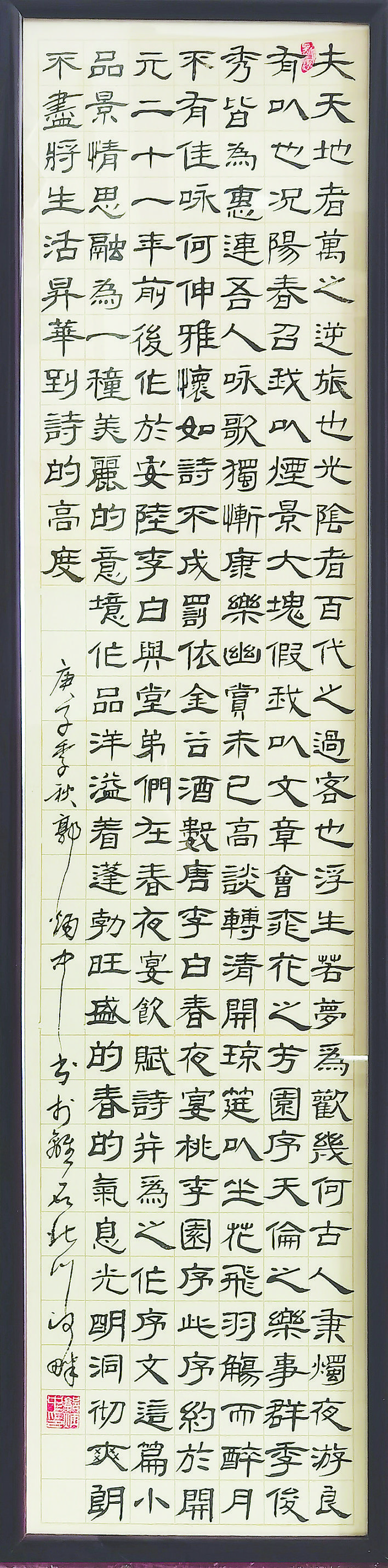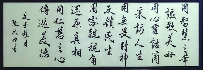 本次大賽共20余人參加,邀請專家評審后甄選出優(yōu)秀書畫作品24幅,在報社二樓集中展出,其中書法作品15幅、畫作9幅。書法有隸書大作,筆力險勁、筆酣墨飽;真書小楷,字字珠璣、秀麗端莊;硬筆書法,行云流水、形神兼?zhèn)?。在書法黑白天地中,充分展示了書法特有的線條魅力,盡現(xiàn)“紙上的舞蹈,墨上的氣功”。畫作有山水寫意人物花鳥漫畫,作品氣韻生動,形神兼?zhèn)?,有的濃墨重彩,雄渾厚重。畫夕陽下的母親河,真情搖曳;寫煙雨蒼茫的蓮,山水氤氳。在水墨之間表現(xiàn)了特有的生命藝術的張力,顯示高山流水的高潔情操。