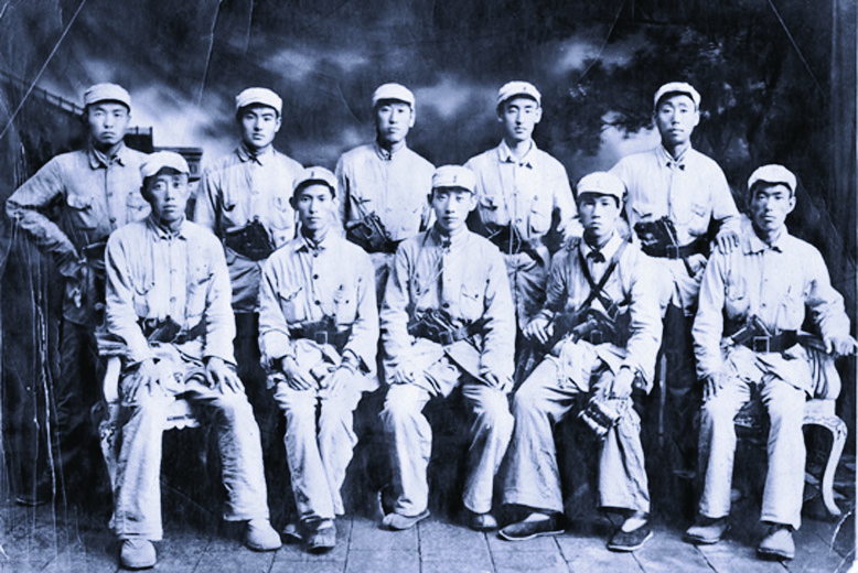 戰(zhàn)役結(jié)束后,離石縣武委會在汾陽合影留念,武委主任劉挺,離石縣青救會主任王正選、閻權(quán)、王繼剛、高義錄、王俊仁、王開寧和我,在汾陽城照了這張相。