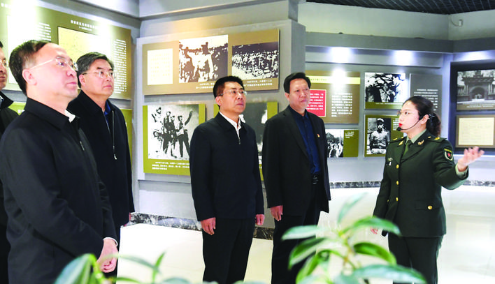 坐落在興縣蔡家崖村的晉綏邊區(qū)革命紀(jì)念館,是全國重點(diǎn)文物保護(hù)單位、全國愛國主義教育示范基地。孫大軍一行懷著崇敬的心情,參觀晉綏邊區(qū)革命紀(jì)念館,瞻仰晉綏軍區(qū)司令部舊址,深切緬懷革命先輩,深情回顧革命戰(zhàn)爭(zhēng)年代呂梁兒女踴躍支前、投身革命的光輝歷史,重溫習(xí)近平總書記的殷殷囑托。他指出,呂梁精神是我們黨寶貴的精神財(cái)富,是呂梁兒女在戰(zhàn)爭(zhēng)年代用鮮血和生命鑄就的偉大精神,是呂梁人民心中永不褪色的精神豐碑,激勵(lì)呂梁老區(qū)取得了革命、建設(shè)和改革的顯著成就,特別是取得了消除絕對(duì)貧困的歷史性勝利,也必然是新發(fā)展階段呂梁轉(zhuǎn)型發(fā)展蹚新路的強(qiáng)大精神動(dòng)力。我們要始終牢記習(xí)總書記的殷切囑托,在開啟全面建設(shè)社會(huì)主義現(xiàn)代化國家的新征程中大力弘揚(yáng)呂梁精神,特別是在黨史學(xué)習(xí)教育中,要著力把我市的紅色資源利用好、紅色傳統(tǒng)發(fā)揚(yáng)好、紅色基因傳承好,用呂梁精神筑牢呂梁之魂,激勵(lì)廣大黨員干部在轉(zhuǎn)型發(fā)展、鄉(xiāng)村振興、生態(tài)建設(shè)和民生改善中艱苦奮斗、攻堅(jiān)克難,敢于擔(dān)當(dāng)、勇于創(chuàng)新,堅(jiān)韌不拔、久久為功,持續(xù)打造風(fēng)清氣正的政治生態(tài)和社會(huì)生態(tài),為建設(shè)美麗幸福呂梁而頑強(qiáng)奮斗。