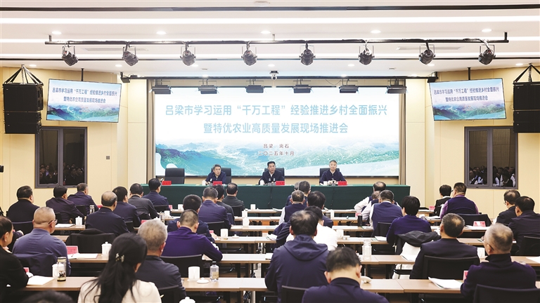 本報訊 (記者 李雅萍) 10月14日,我市召開學習運用“千萬工程”經(jīng)驗推進鄉(xiāng)村全面振興暨特優(yōu)農(nóng)業(yè)高質(zhì)量發(fā)展現(xiàn)場推進會,傳達貫徹省委書記唐登杰呂梁調(diào)研指示精神,總結鄉(xiāng)村旅游重點村建設成效,部署推進鄉(xiāng)村建設、鞏固銜接、特優(yōu)農(nóng)業(yè)、土地整治、秋收秋種等工作。市委書記孫大軍講話。市委副書記、市長熊義志主持。市領導張利鋒、田安平、張子梁、劉繼隆、劉世慶、龐明明、薛愛平出席。